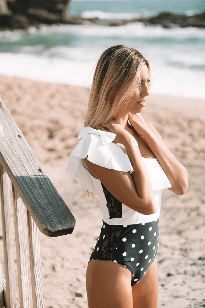POLKADOT ONE SHOULDER SWIMSUIT